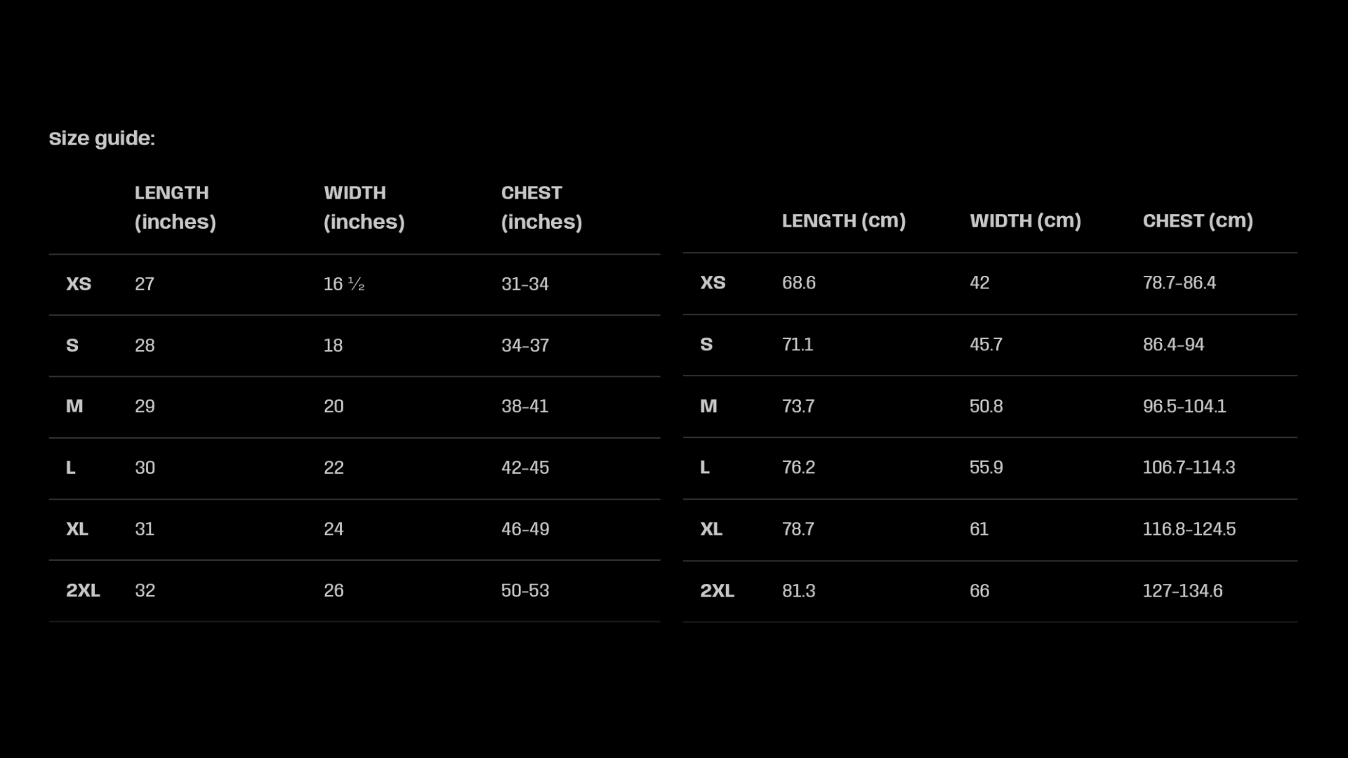 Sizing: Check our product sizing charts carefully before ordering - we can't exchange for fit issues.